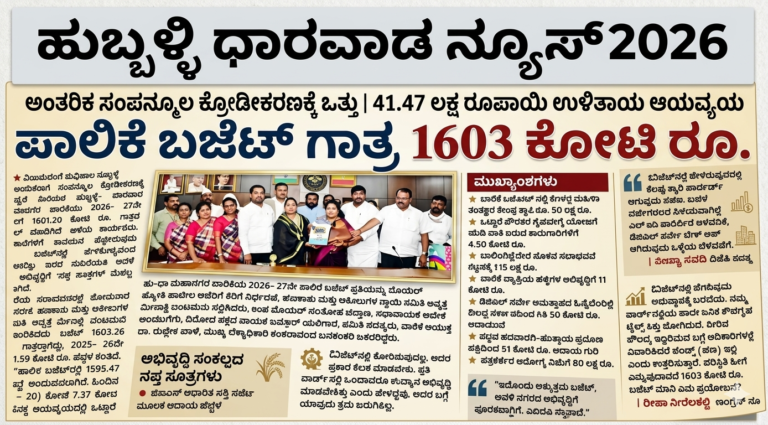 Kannada news 2026:ಹುಬ್ಬಳ್ಳಿ ಪಾಲಿಕೆ ಬಜೆಟ್ 2026: ₹1603 ಕೋಟಿ ಘೋಷಣೆ – ಜನರಿಗೆ ಭರ್ಜರಿ ಲಾಭ!