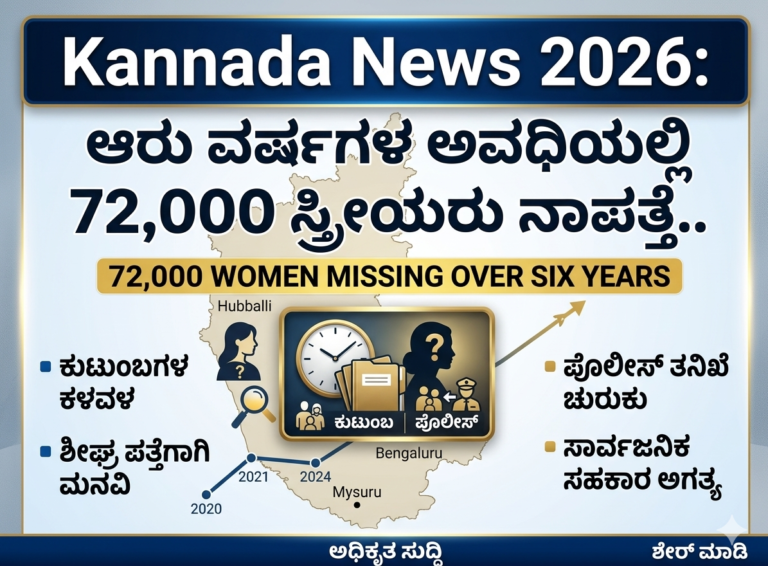Kannada news 2026:ಆರು ವರ್ಷ ಅವಧಿಯಲ್ಲಿ 72.000 ಸ್ತ್ರೀಯರು ನಾಪತ್ತೆ..