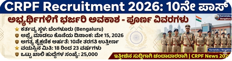 CRPF Recruitment 2026: 10ನೇ ಪಾಸ್ ಅಭ್ಯರ್ಥಿಗಳಿಗೆ ಭರ್ಜರಿ ಅವಕಾಶ – ಪೂರ್ಣ ವಿವರಗಳು